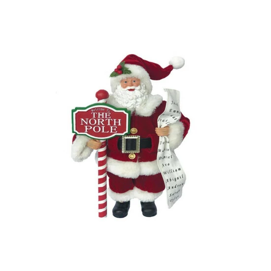 There’s not a lot of people, but there’s certainly a lot of magic at the North Pole! Dressed in his classic red outfit trimmed in white faux fur and wearing a holly-adorned red hat, Santa is busy checking his gift list one last time before takeoff. The detail and craftmanship of this wonderful figurine will bring fun and delight for many seasons to come.