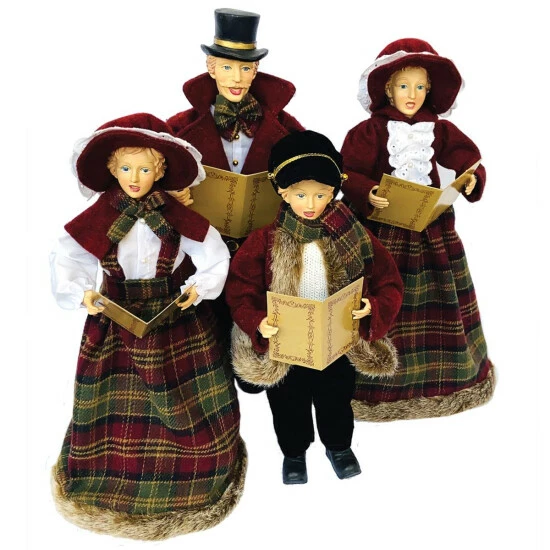 Santa’s Workshop 27″-37″ Burgundy Plaid Caroling Family Figurines