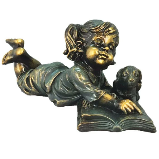 “It says so right here.” Watch as this playful little girl tries to convince her concerned puppy that puppies do have to wear anything little girls want them to wear. Hand-painted with a bronze finish and hand-crafted from long-lasting resin, this whimsical statue is sure to provide many years of enjoyment.
