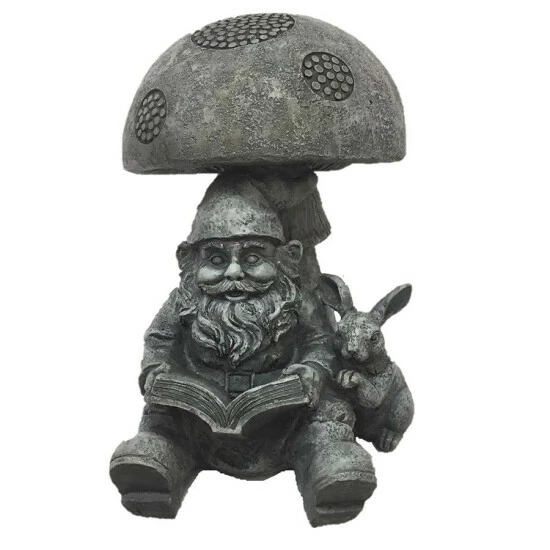 This happy gnome is taking a well-earned break from the sun with two of his favorite companions: a book and a bunny. Delightfully detailed and crafted from long-lasting resin, this wonderful figurine will provide many seasons of enjoyment.